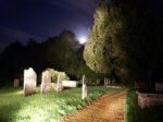 We walked up the path towards the church doors. It didn’t feel scary because it was so light that night. We decided to walk around the church and headed for the back of the church. As we walked round to the back it started to get darker as the church was blocking out some of the moon light. It was here that one of us thought we saw a grey shadow move along the side of the church round to the front. We decided to go and investigate what it might have been. But there was nothing to see as we approached the spot where we thought the shadow had been seen. We continued back round to the front of the church. And we decided to look for the crypt I had been told about.